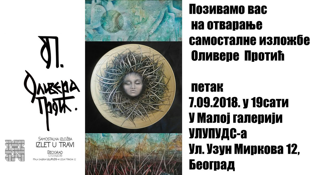 Izložba Olivere Protić Izlet u travi otvorena je u petak, 07. septembra 2018. godine u 19.00 sati.
