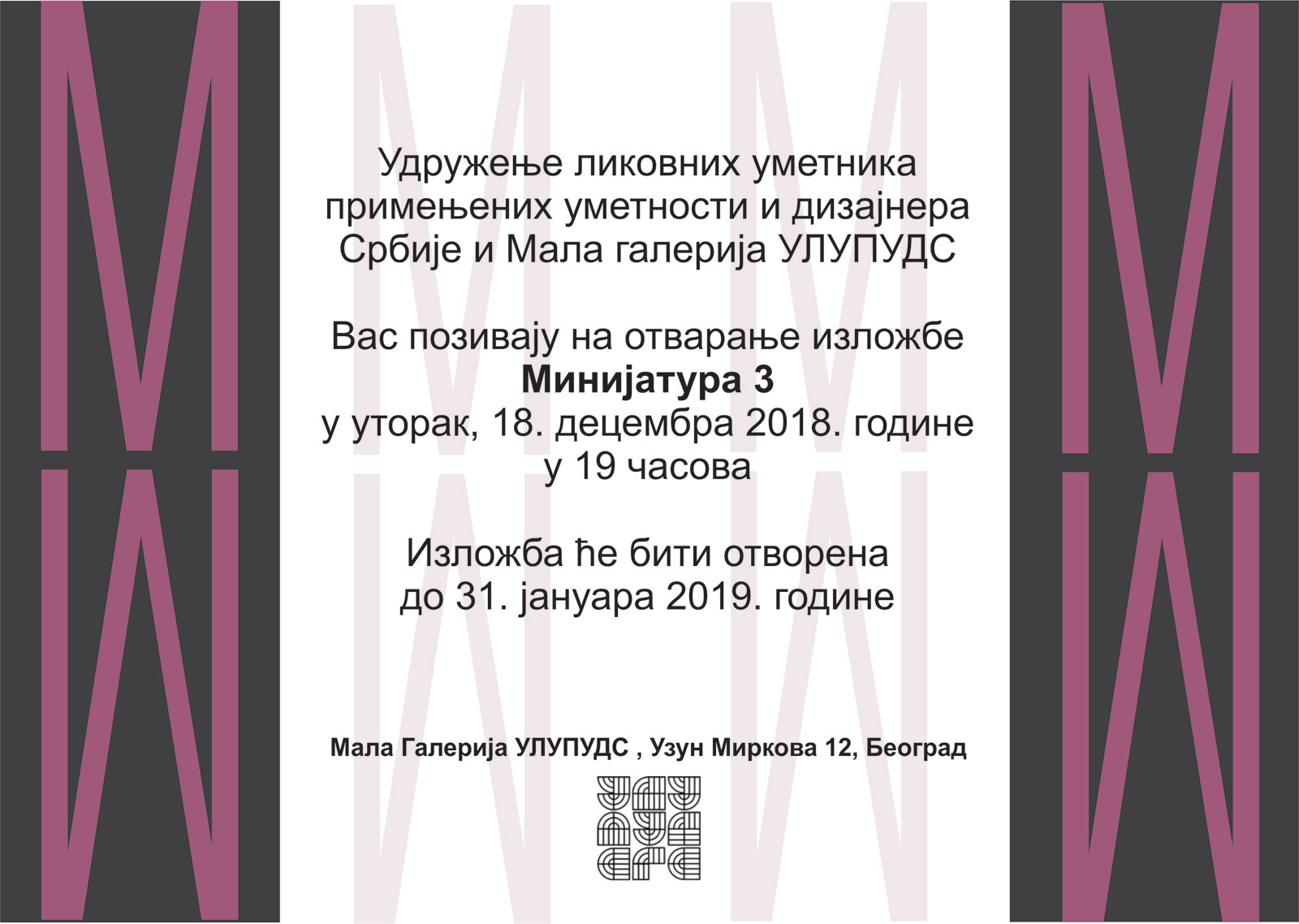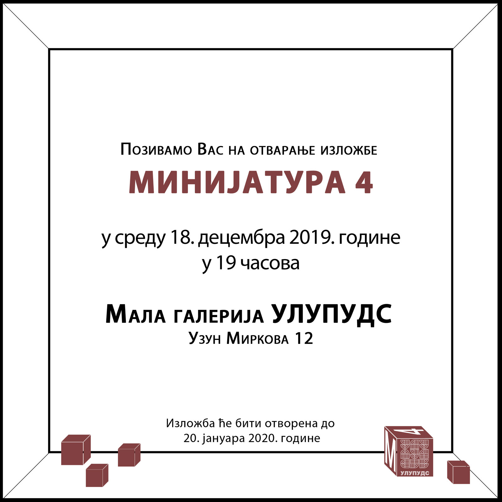 Izložba Minijatura 2 otvorena je u u sredu, 27. decembra 2017. godine.