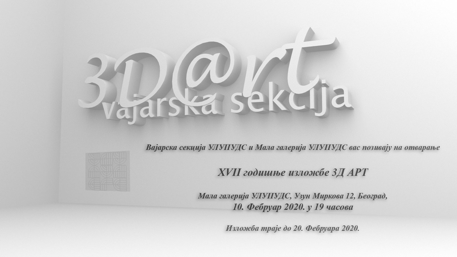 Izložba Vajarske sekcije ULUPUDS-a 3D ART održana je od 02 do12. februara 2021. godine.