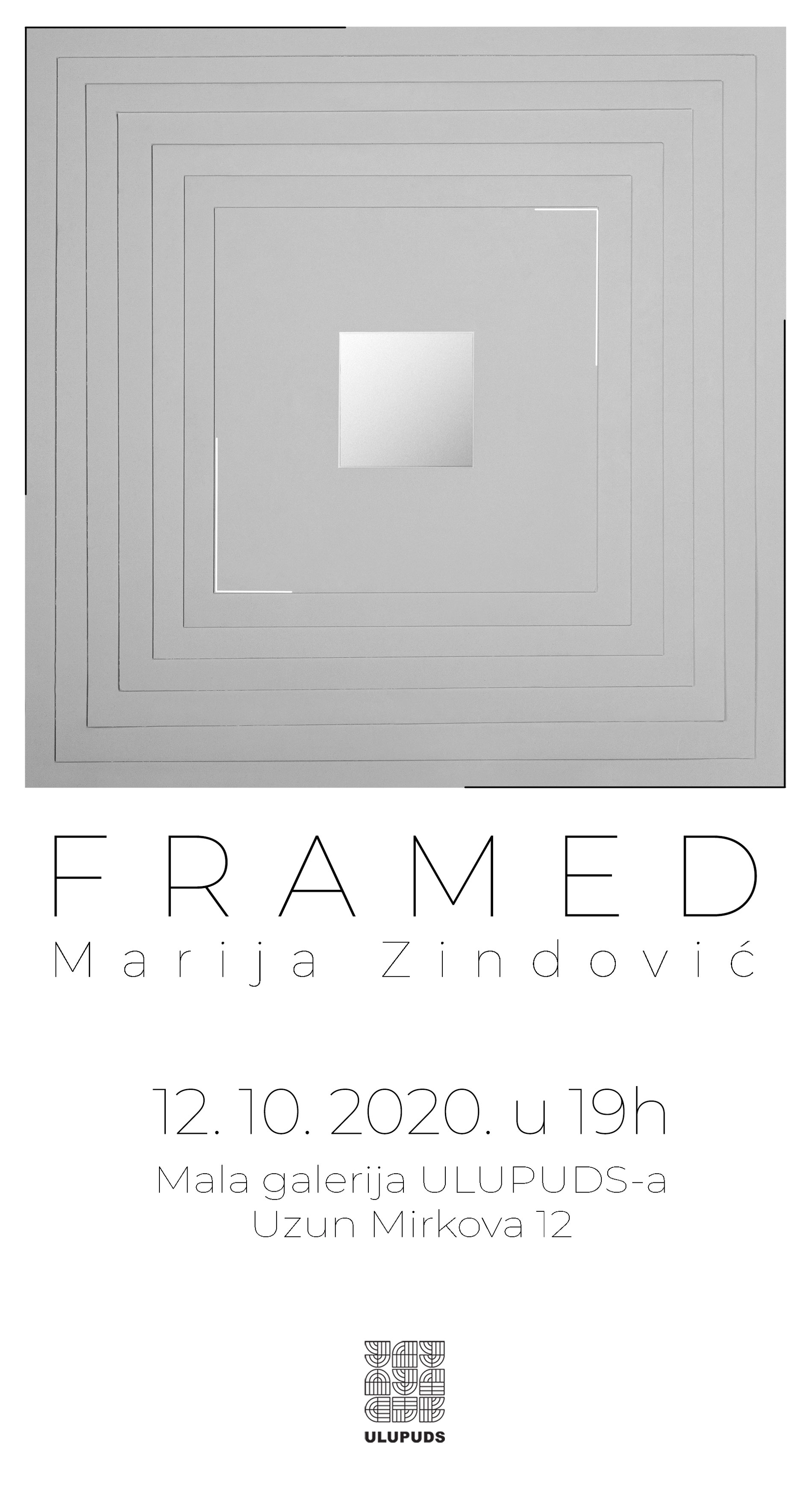 Izložba fotografija Framed Marije Zindović otvorena je 12. oktobra 2020. godinei.
