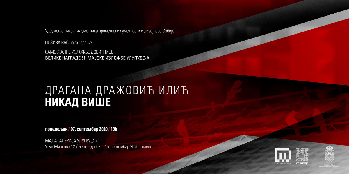 Izložba Dragane Dražović-Ilić Nikad više održana je u okviru prateće izložba 52. Majskog salona ULUPUDS-a od 07 do 15. septembra 2020. godine u Maloj Galeriji ULUPUDS-a.