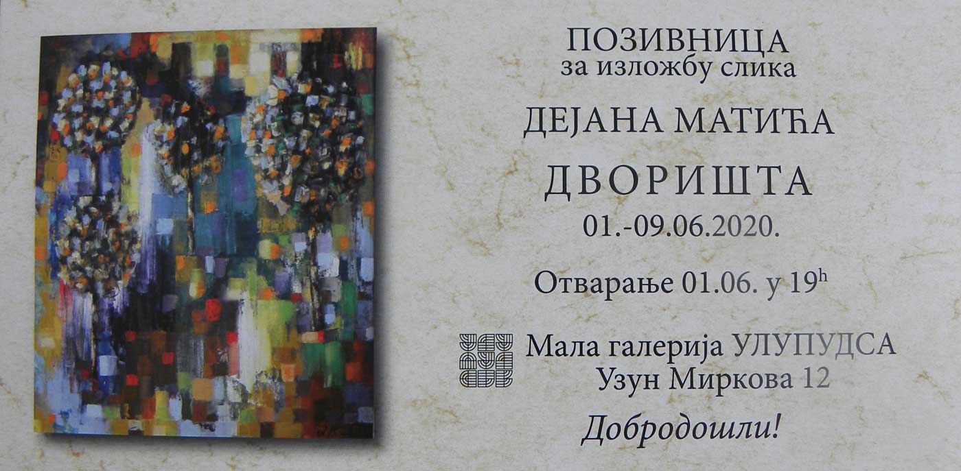 Izložba slika Dejana Matića Dvorišta održala se od 01 do 09. juna 2020. godine.