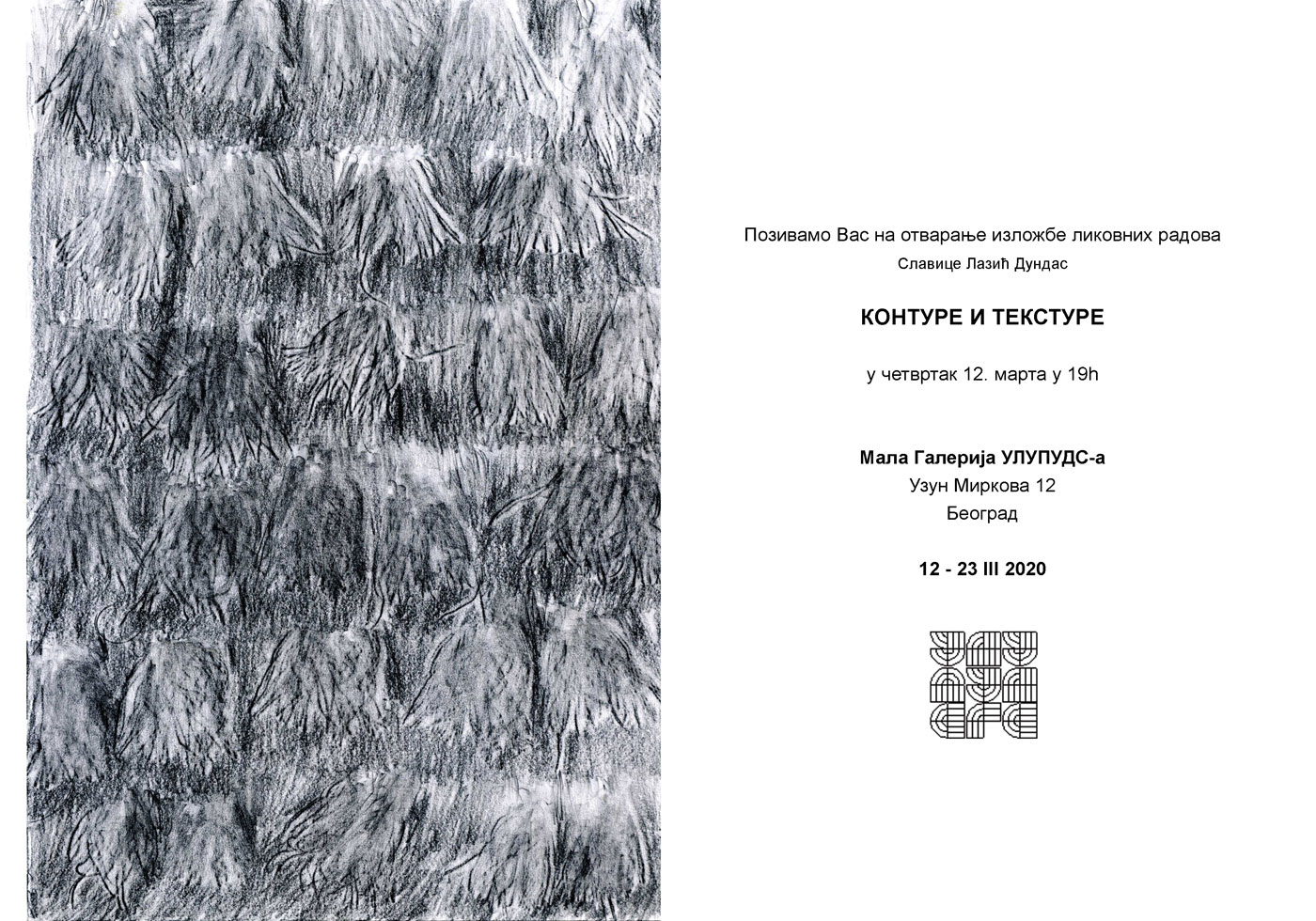 Izložba Slavice Lazić Dundas otvorena je u četvrtak, 12. marta 2020. godine u 19.00 sati.