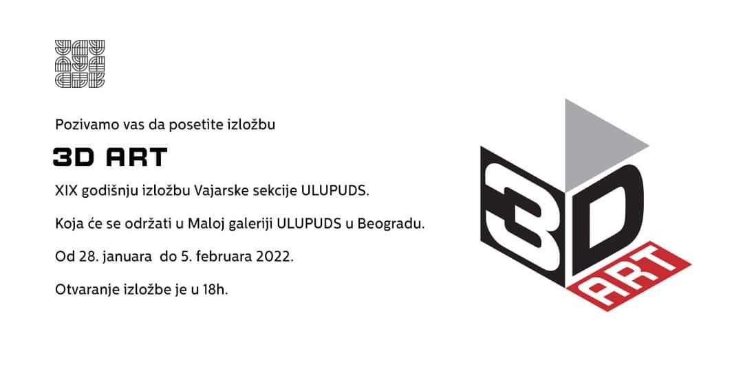 3D ART XIX - GODIŠNJA IZLOŽBA VAJARSKE SEKCIJE ULUPUDS-a otvorena je 28. januara 2022. godine.