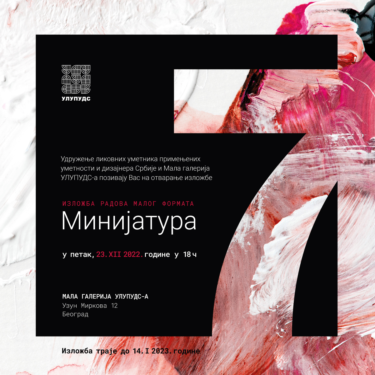 Izložba MINIJATURA 7 održana je od 23. decembra 2022. godine do 14. januara 2023. godine.